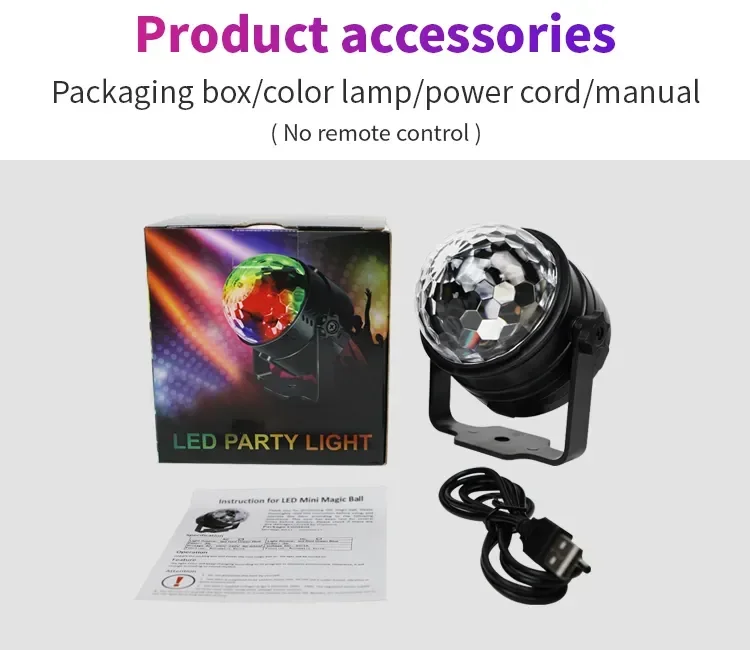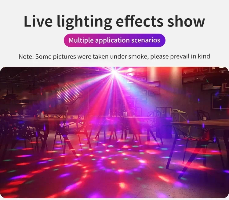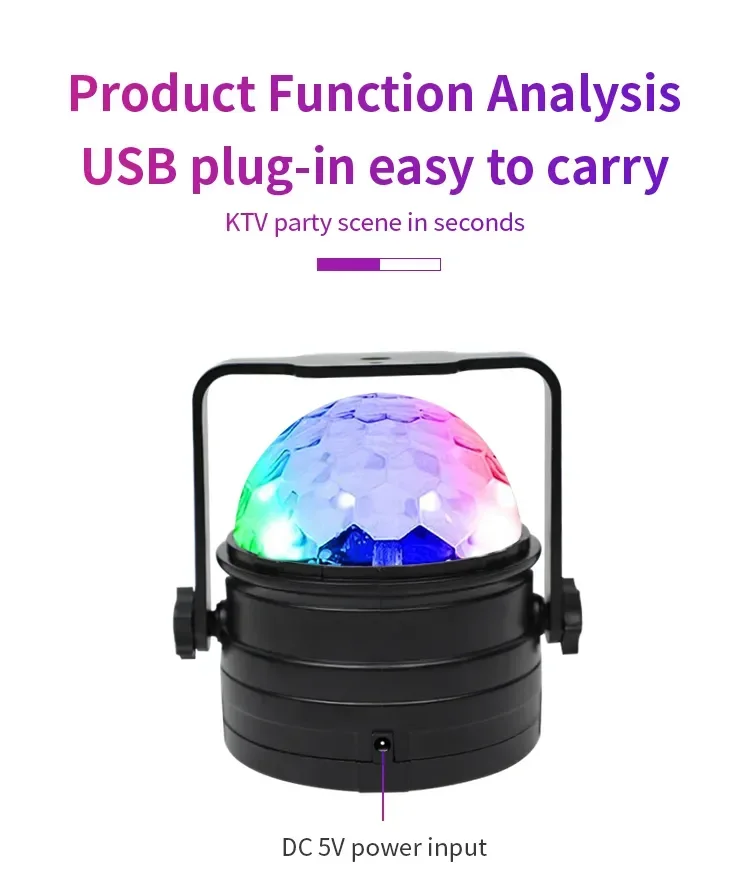 • أضواء ديسكو متعددة الوظائف: ٣ أوضاع تفعيل بالصوت + ٧ أوضاع إضاءة + وميض + تحكم بسرعة الدوران + تحكم بسرعة الوميض.