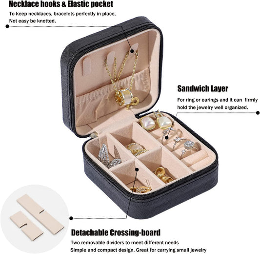 Mini Jewelry Travel Case, PU Leather Travel Jewelry Organizer Box, Small Portable Portable Jewellery Storage Holder for Womens Rings Earrings Necklaces Bracelets (Black)