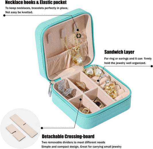 Mini Jewelry Travel Case, PU Leather Travel Jewelry Organizer Box, Small Portable Portable Jewellery Storage Holder for Womens Rings Earrings Necklaces Bracelets (Blue)