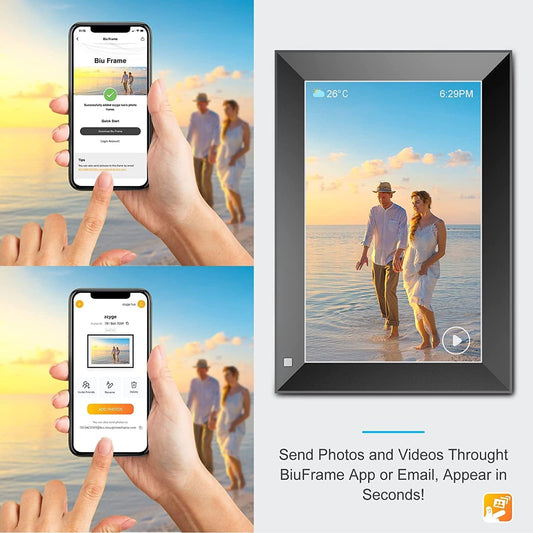 10.1 Zoll WLAN Digitaler Bilderrahmen - Fotos & Videos Sofort Teilen, Automatische Drehung, Bewegungssensor, Energiesparend, Schwarz