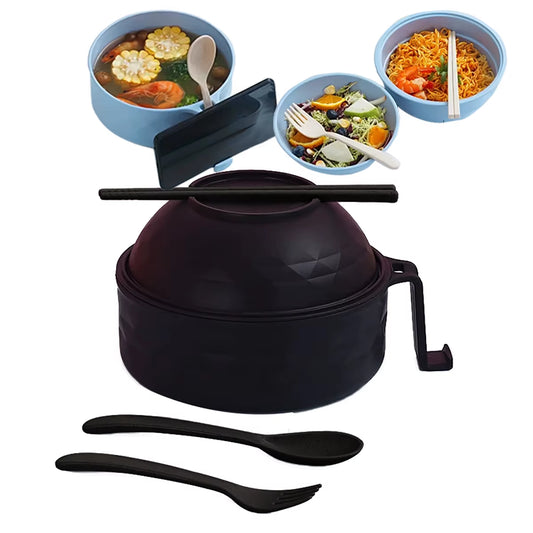 Microwave Ramen Bowl Cooker Set - Wheat Straw Instant Noodles Bowl with Handles, Ramen Noodle Cooker with Spoon Chopsticks Fork
