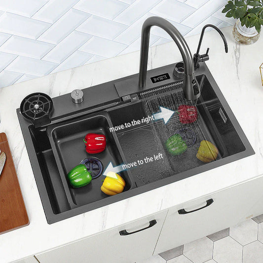 Waterfall Sink Kitchen Stainless Steel Topmount Sink Large Single Slot Wash Basin with Multifunction Touch Waterfall Faucet