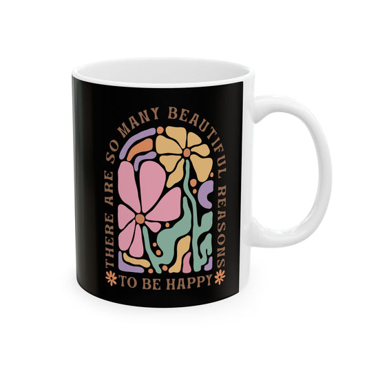 Motivational Floral Coffee Mug | Beautiful Reasons To Be Happy | Positive Affirmation Cup | Inspirational Morning Mug | Ceramic Mug, 11oz
