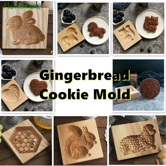 Cookie Mold Cutter Wooden Gingerbread Mold Cookie Cutter Mold Press 3D Cake Embossing Baking Mold Tools Biscuit Provance Cookie