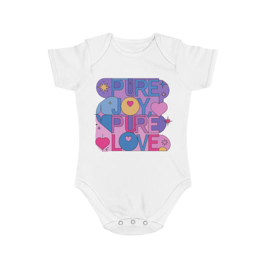 Pure Joy Pure Love T-shirt | Typography | Positive Quote Tee | Colorful Love Design | Modern Heart Shirt | Baby Sleeve Organic Bodysuit