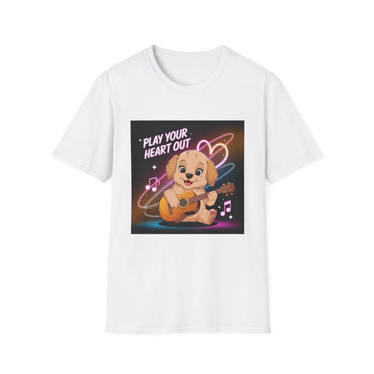 Play Your Heart Out T-shirt | Cute Puppy Guitar Music Design | Dog Lover Gift | Musician Tee | Musical Animal Art