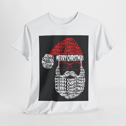 Cool Santa Typography T-Shirt | Christmas Text Art Tee | Holiday Word Art Design | Santa Claus Sunglasses Shirt | Modern Christmas Gift