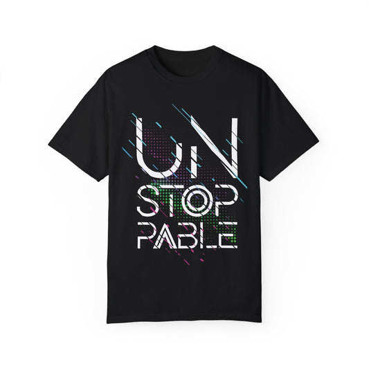 Unstoppable Cyberpunk T-Shirt | Futuristic Typography Design | Modern Motivational Tee | Tech Style Statement | Unisex Garment-Dyed T-shirt