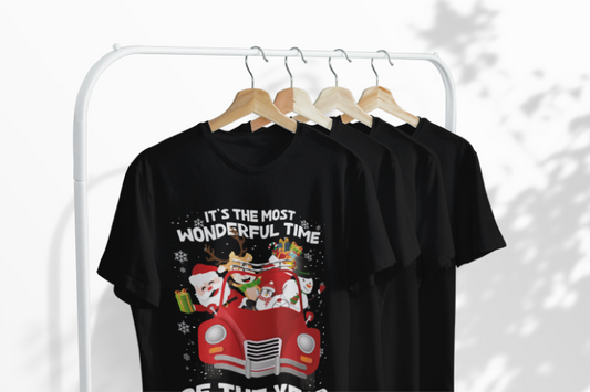 Christmas Car T-Shirt | Santa Road Trip Tee | Wonderful Time Design | Holiday Friends Gift | Festive Winter Shirt | Unisex Heavy Cotton Tee