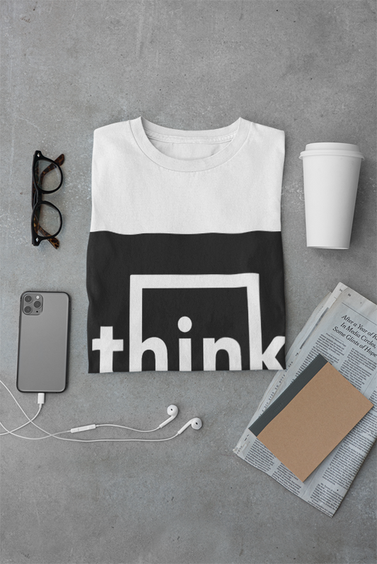 Think Minimalist T-Shirt | Modern Philosophy Design | Mindful Typography Tee | Intellectual Statement Shirt | Geometric Thought Art