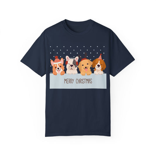 Dog Christmas T-Shirt | Cute Puppy Holiday | Pet Lover Gift | Christmas Dogs | Unisex Garment-Dyed T-shirt | Christmas T-shirt
