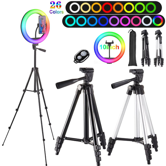 10In RGB Selfie Ring Light Tripod LED Fill Light Photography Ringlight Phone Stand Holder Circle Lamp Trepied Streaming Youtobe