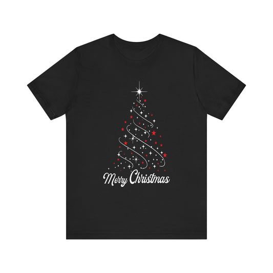 Elegant Christmas Tree T-Shirt | Star Sparkle Holiday Design | Red White Festive Tee | Modern Christmas Fashion | Unisex T-shirt