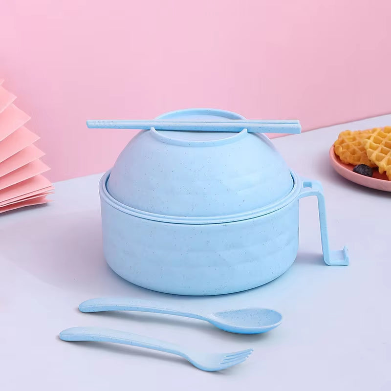 Microwave Ramen Bowl Cooker Set - Wheat Straw Instant Noodles Bowl with Handles, Ramen Noodle Cooker with Spoon Chopsticks Fork