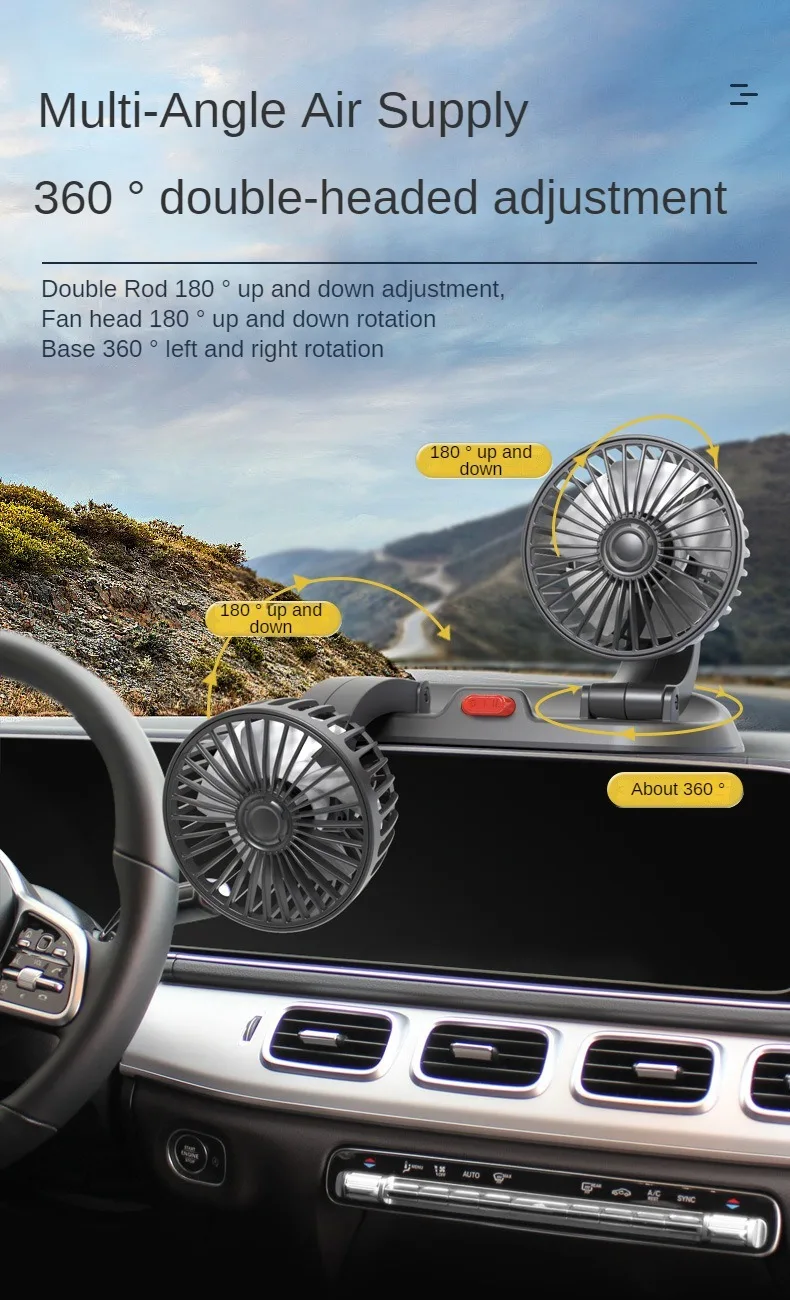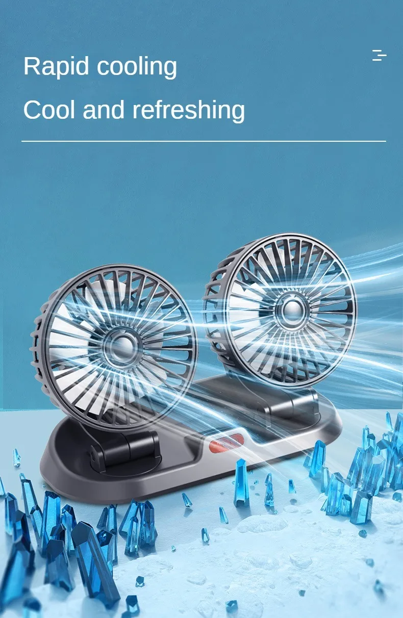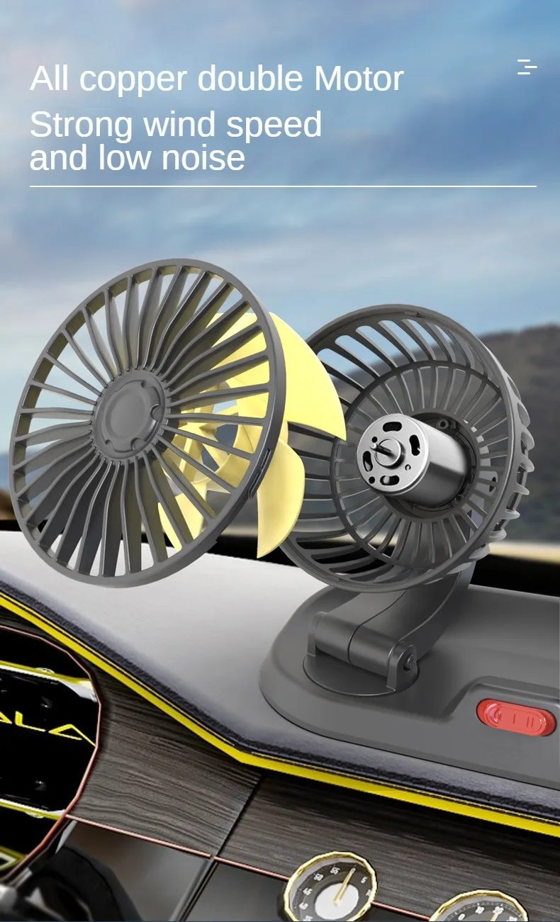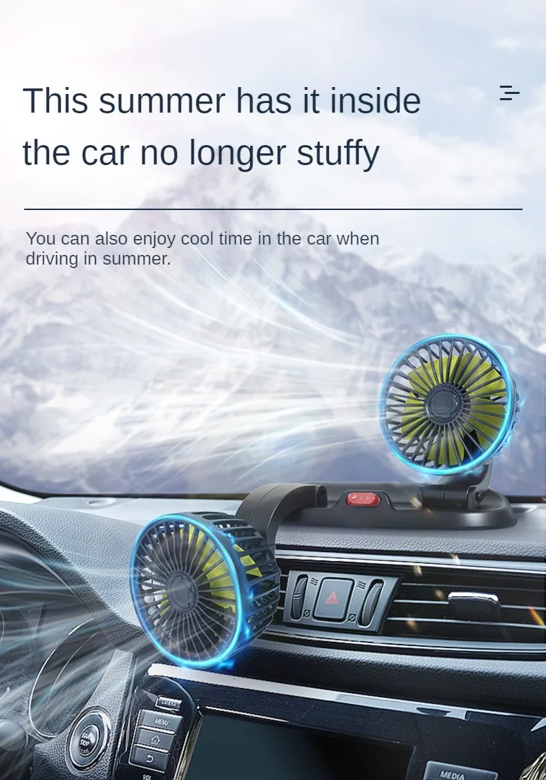 2. Dual Heads:This car fan has dual heads design,It can provide cool and refreshing for the driver and main passenger at the same time.