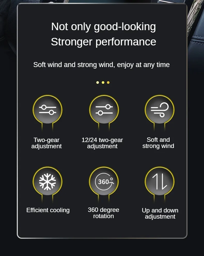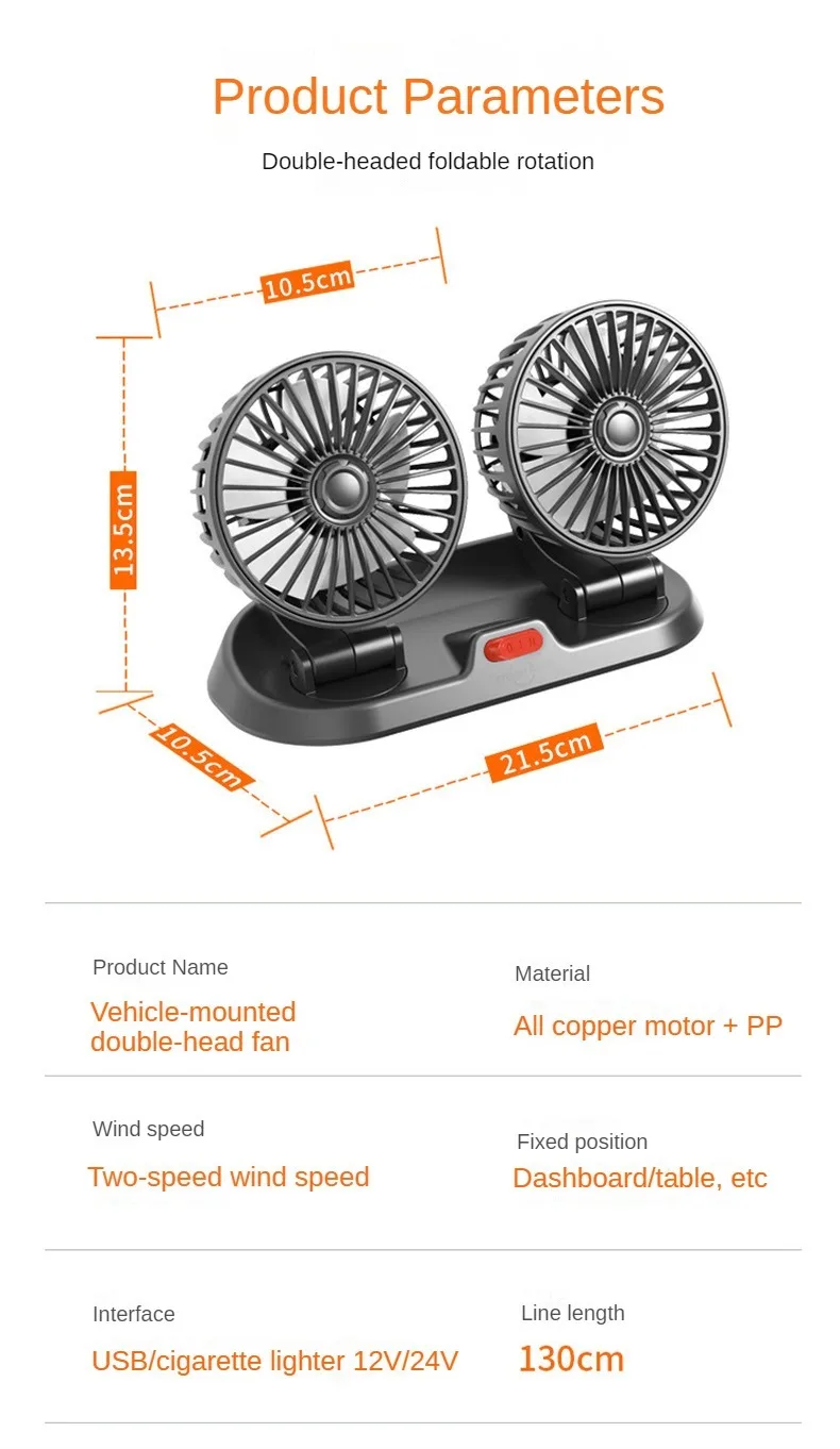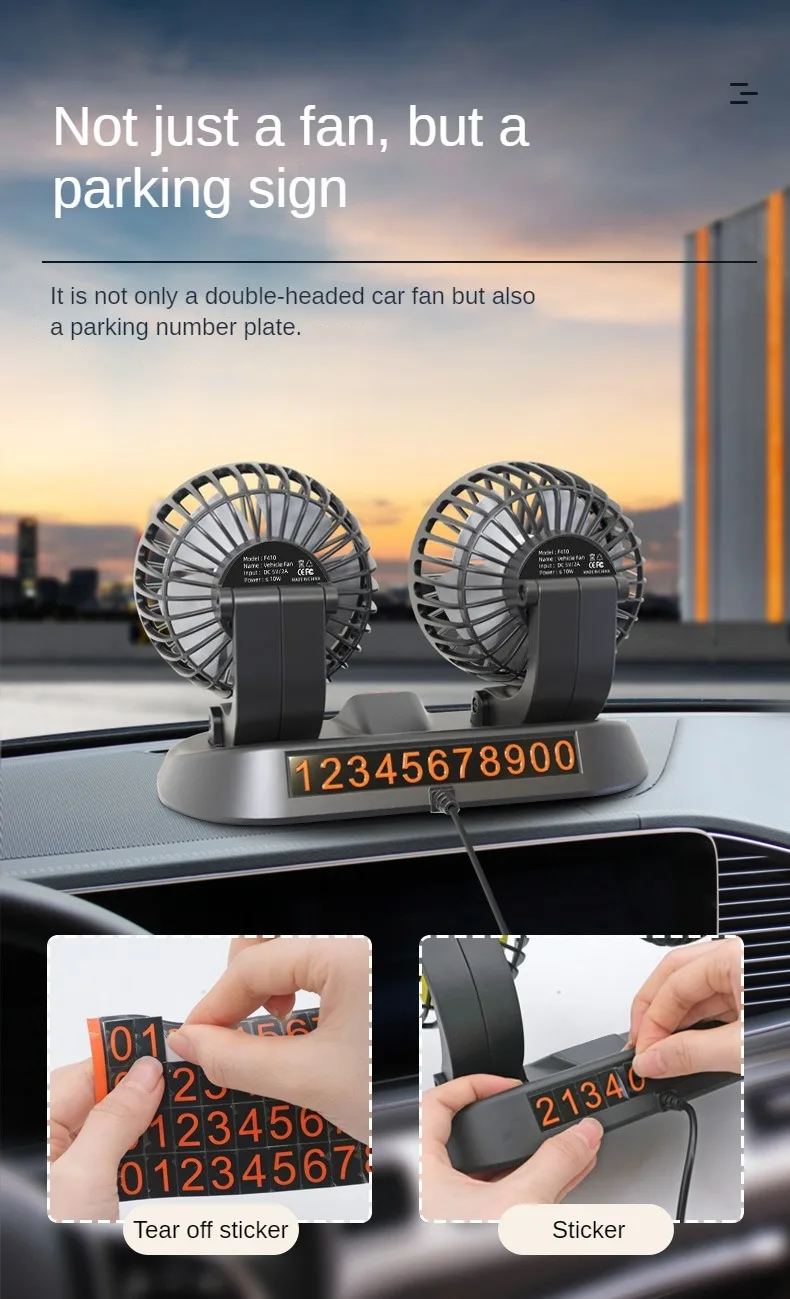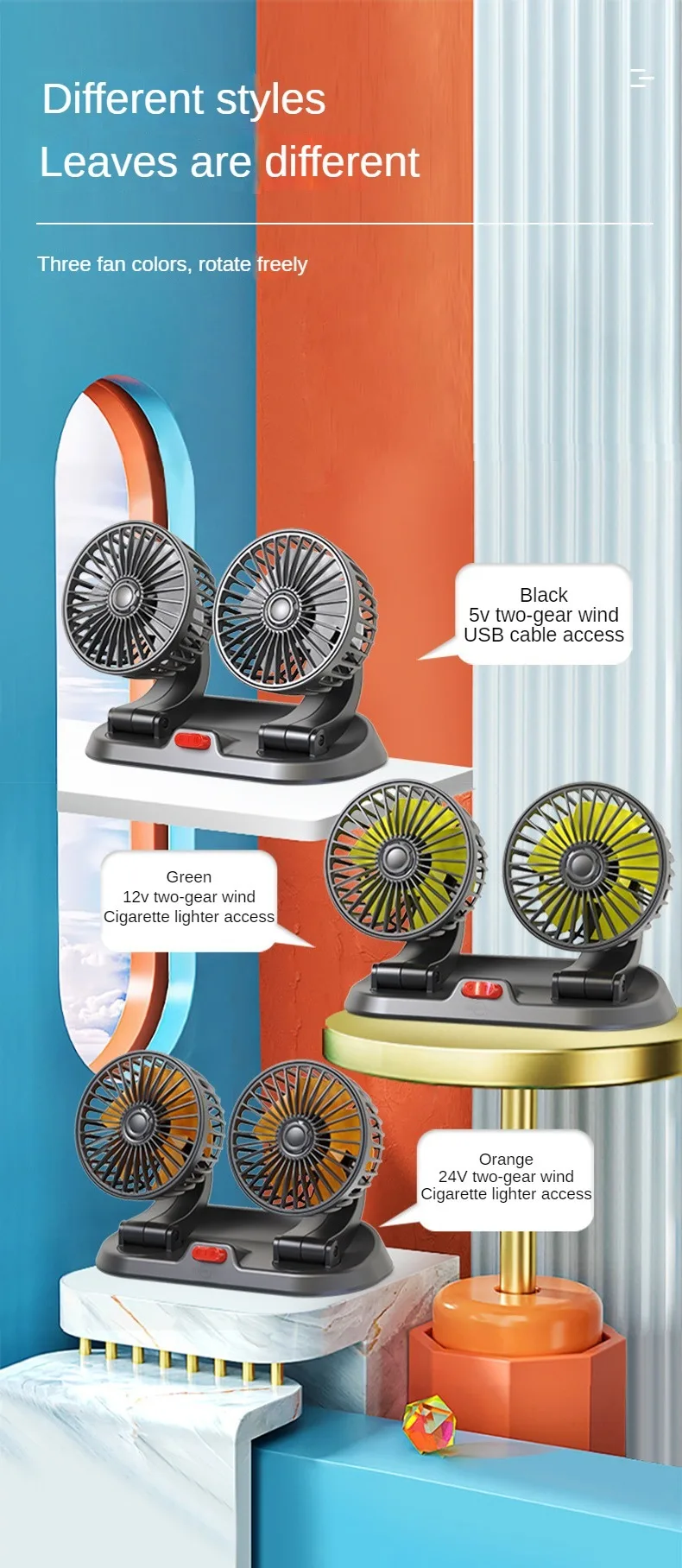 2. Dual Heads:This car fan has dual heads design,It can provide cool and refreshing for the driver and main passenger at the same time.