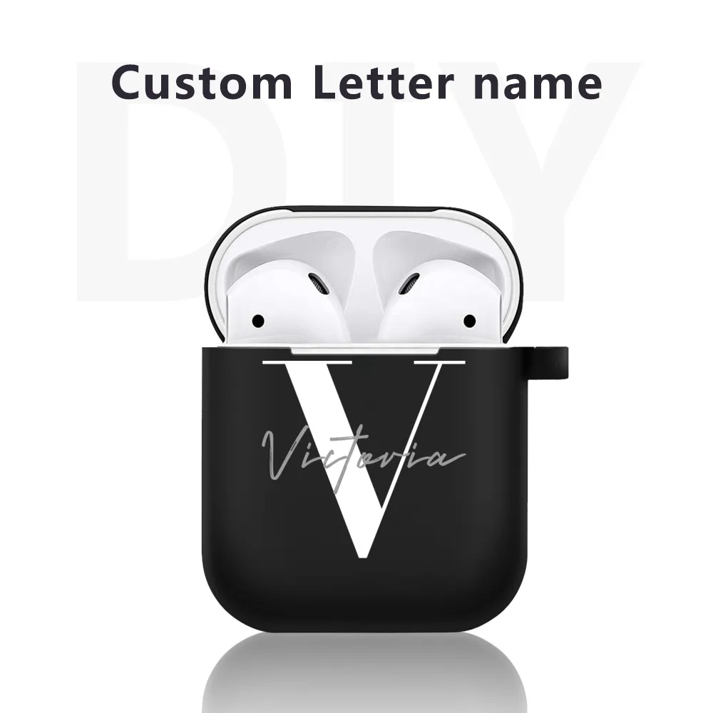 Customize for Airpods 2 Case Cute Name Initials Letter for Air Pod Silicone Luxury Cover Funda Airpods Case Earphone Accessories