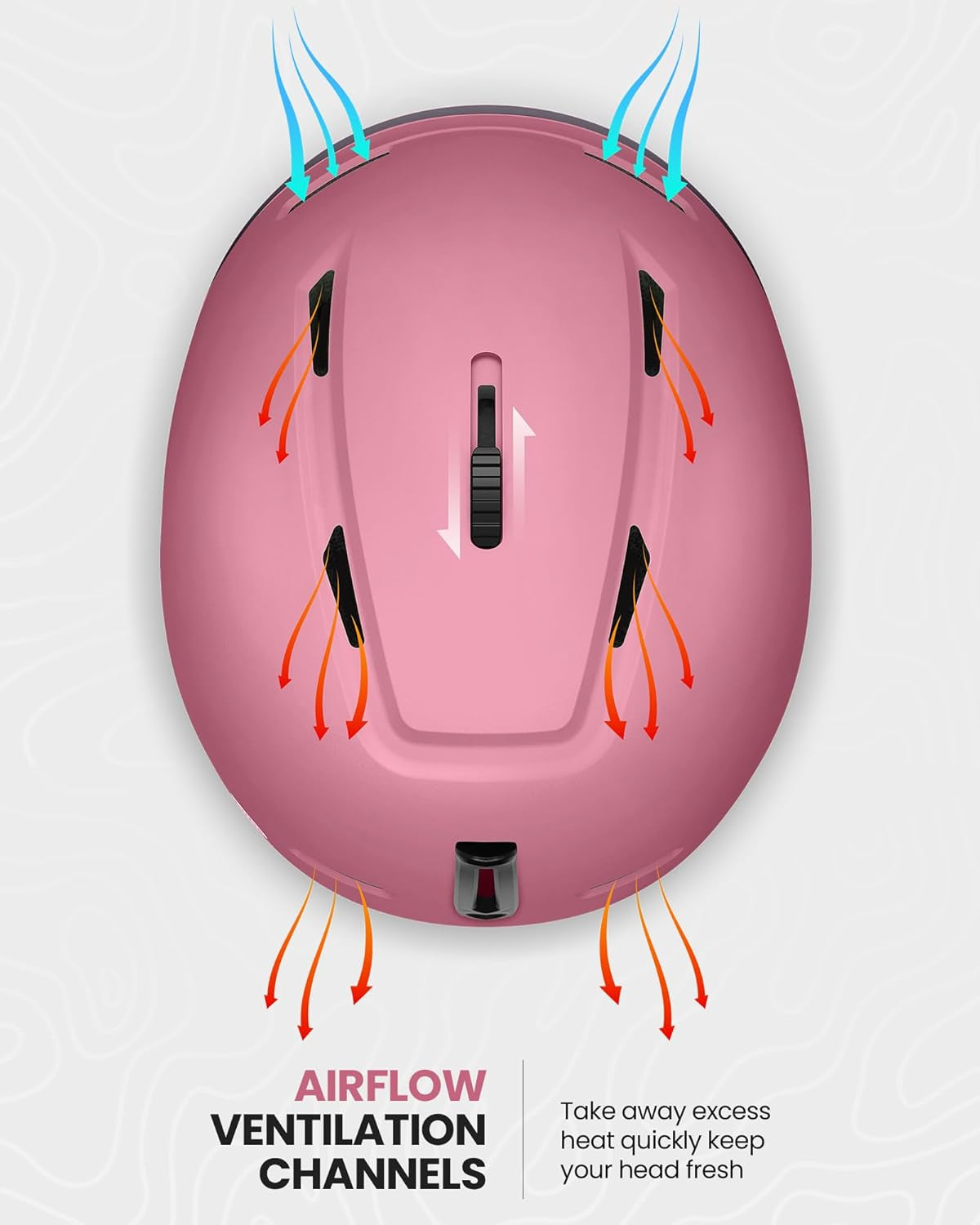 • Mit dem Outdoormaster Skihelm genießen Sie hervorragende Belüftung! Der Helm verfügt über ein feuchtigkeitstransportierendes Mesh-Futter und insgesamt 8 individuelle Belüftungsöffnungen, von denen 4 verstellbar sind. So kann heiße Luft schnell entweichen, was für eine optimale Temperatur und ein angenehmes Tragegefühl sorgt, selbst während intensiver Abfahrten. Dank des benutzerfreundlichen Schieberegler-Designs sind auch Anpassungen bei kaltem Wetter und mit Handschuhen mühelos möglich.