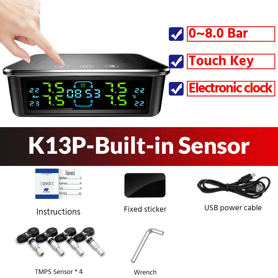 Smart TPMS Touch 8 Bar 4 Sensors Car Tire Pressure Monitoring System Electronic Devices Smart Alarm Systems Sensors Teyes
