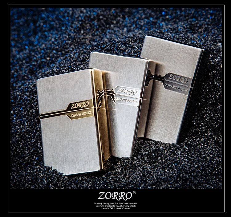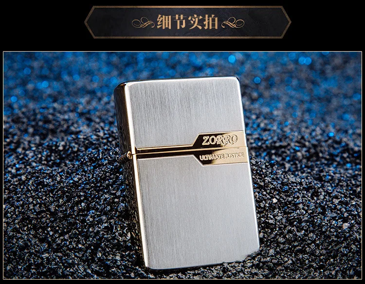 Zorro Original Copper Light Plate Gold Brushed Pure Copper Windproof Kerosene Lighter Narrow Machine Men'S Cool